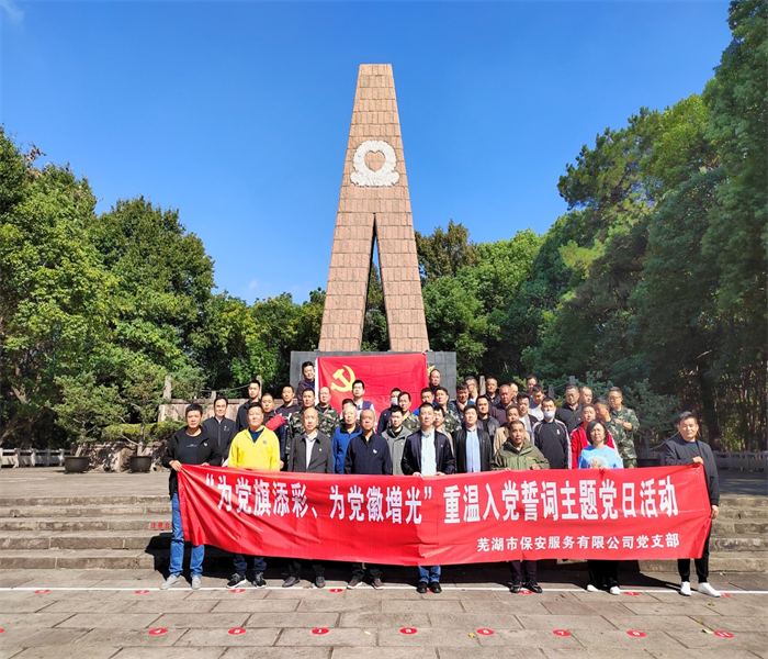 为持续巩固深化党史学习教育成果,充分用好本地红色资源,教育引导公司广大党员在学思践悟中锤炼党性。根据上级党委统一安排,10月12日上午,市保安公司党支部组织党员前往市烈士陵园开展“为党旗添彩、为党徽增光”重温入党誓词主题党日活动。
